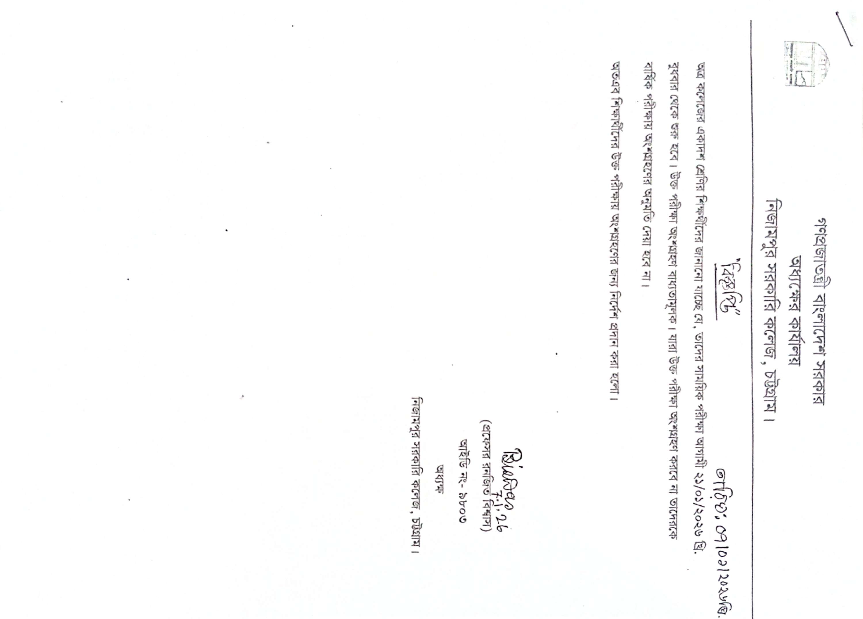 একাদশ শ্রেণী (২৫-২৬) ক্লাস সংক্রান্ত বিজ্ঞপ্তি